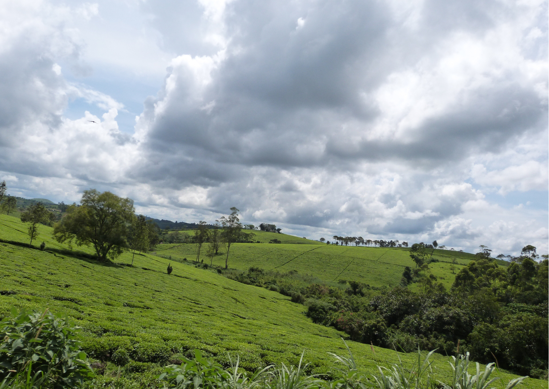 Vandaag verlaten jullie Queen Elizabeth National Park en rijden jullie richting Kibale Forest. De route voert door een landschap vol groene heuvels, kleine dorpjes en uitgestrekte theeplantages waar mensen in felgekleurde kleding tussen de rijen struiken werken. Het is een mooie rit die langzaam verandert van savanne naar regenwoudomgeving.