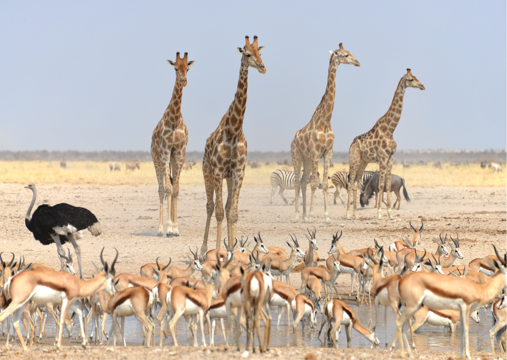 Je rijdt vandaag op je gemak van het westelijke naar het centrale deel van Etosha National Park. Onderweg bezoek je meerdere waterholes, waar altijd leven te spotten is. Van zebra’s en oryxen tot olifanten die rustig hun dorst lessen.
