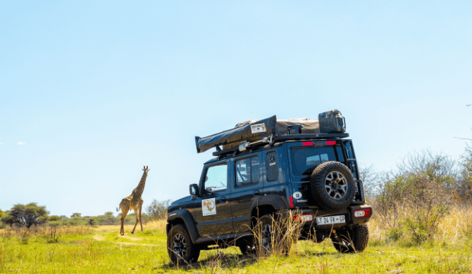 Deze Jimny is volledig uitgerust met een kwalitatieve daktent voor 2 personen en een complete kampeeruitrusting. Zo heb je alles bij de hand: van een stevig matras en kookgerei tot stoelen, tafel en een koelbox. Je kampeert op de mooiste plekken midden in de natuur en geniet van de ultieme vrijheid die een selfdrive in Zuid-Afrika biedt.